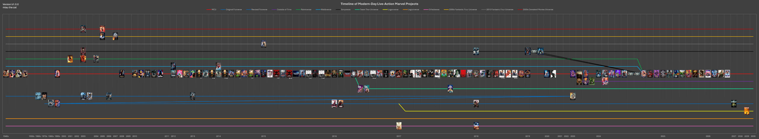 At the moment, there are two versions of the timeline. One that places projects in their canonical year (which I currently don't update due to some exporting issues in Excel) and another one that focuses on the narrative order without stating any years.